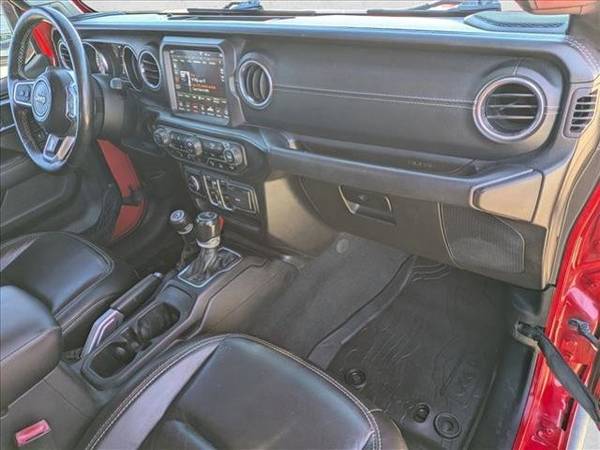 * Transmission: 8-Speed Automatic (850Re) * 8.4" Radio & Premium Audio Group * Black; Leather Trimmed Bucket Seats * Alpine Premium Audio System * Black 3-Piece Hard Top * Led Lighting Group * Cold Weather Group * Safety Group * Advanced Safety Group * Anti-Spin Differential Rear Axle * Leather Seats * Remote Proximity Keyless Entry * Remote Start System * Navigation System * Trailer Tow Package * All-Weather Slush Mats * Keyless Start * Convertible Hardtop * Engine: 3.6L V6 24V Vvt Upg I W/Ess * Firecracker Red Clearcoat * Radio: Uconnect 4C Nav W/8.4" Display * Tires: 255/70R18 Bsw All SeasonThis vehicle includes a Money-Back Guarantee* and passed our precise inspection process. Best of all the price you see is the price you pay. No haggling. No back and forth. No pressure. And this price is so good it is guaranteed. *Money-Back Guarantee is valid for 5 days or 250 miles, whichever comes first. Subject to certain terms and conditions. See store for details. Some restrictions apply.Looking for a clean, well-cared for 2020 Jeep Gladiator? This is it. This Jeep includes: LED LIGHTING GROUP Fog Lamps Daytime Running Lights MANUFACTURER'S STATEMENT OF ORIGIN REMOTE PROXIMITY KEYLESS ENTRY Keyless Start Power Door Locks Keyless Entry TRANSMISSION: 8-SPEED AUTOMATIC (850RE) 8-Speed A/T Transmission w/Dual Shift Mode A/T ALL-WEATHER SLUSH MATS Floor Mats ANTI-SPIN DIFFERENTIAL REAR AXLE Locking/Limited Slip Differential RADIO: UCONNECT 4C NAV HD Radio Navigation System AM/FM Stereo Satellite Radio Bluetooth Connection BLACK 3-PIECE HARD TOP Targa Roof Sliding Rear Window Rear Defrost Convertible Hardtop COLD WEATHER GROUP Heated Steering Wheel Heated Front Seat(s) 8.4 RADIO HD Radio Navigation System Auto-Dimming Rearview Mirror AM/FM Stereo Satellite Radio Bluetooth Connection Premium Sound System Telematics BLACK, LEATHER TRIMMED BUCKET SEATS Leather Seats Bucket Seats QUICK ORDER PACKAGE 24G ENGINE: 3.6L V6 24V VVT UPG V6 Cylinder Engine Gasoline Fuel ADVANCED SAFETY GROUP Brake Assist TIRES: 255/70R18 BSW ALL SEASON (STD) Tires - Front All-Season Tires - Rear All-Season ALPINE PREMIUM AUDIO SYSTEM Premium Sound System FIRECRACKER RED CLEARCOAT REMOTE START SYSTEM Remote Engine Start SAFETY GROUP Rear Parking Aid Blind Spot Monitor Cross-Traffic Alert TRAILER TOW PACKAGE Tow Hitch *Note - For third party subscriptions or services, please contact the dealer for more information.* You appreciate the finer things in life, the vehicle you drive should not be the exception. Style, performance, sophistication is in a class of its own with this stunning Jeep Gladiator Overland. Take home this Jeep Gladiator Overland, and you will have the power of 4WD. It's a great feature when you need to drive over tricky terrain or through inclement weather. The Gladiator Overland has been lightly driven and there is little to no wear and tear on this vehicle. The care taken on this pre-owned vehicle is reflective of the 65,482mi put on this Jeep. Find the quickest driving route in this Jeep Gladiator Overland using the installed navigation system. This nav system is one of the easiest to use and will help get you where you need to go quickly! Added comfort with contemporary style is the leather interior to heighten the quality and craftsmanship for the Jeep Gladiator Overland.